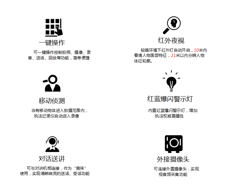 纽约国际588888DSJ-200F 执法仪(法院/政府/城管)拍摄像素高达5000万,广角镜头137,拍摄画面精细而全面,大容量电池支持陆续在工作12小时不断电